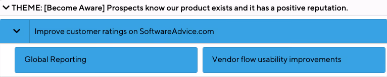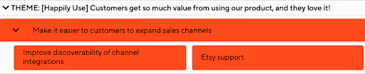 I’ve seen several different approaches, including themes that align with high-level business goals (acquisition, growth, customer satisfaction, etc.) or more granular focus areas like the example in Jim Semick’s article of increasing satisfaction within a user persona group. There are pros and cons to each of these approaches. For example, the business goals approach is static over time, so the themes themselves stay consistent and maintain a pulse on the longer view. But the themes in and of themselves are a bit uninspiring and don’t do much to communicate customer value. In the more granular approach, the focus is more laser-sharp and centered on a specific customer outcome. However, this approach runs the risk of myopia and losing sight of new emergent opportunities that might outweigh the theme’s value.A compelling theme should be centered on the exchange of value between the business and the customer, and the above examples are hyper-focused on one or the other.One way to achieve this balance is to organize your roadmap themes by each phase of the customer journey. This customer journey approach provides a widely universal framework for both business and customer outcomes and promotes a constant, bird-eye perspective on the end-to-end customer experience.
