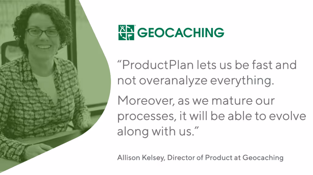 One real-world example of this transformation occurred at Geocaching, behind the globally popular GPS-based treasure hunting game. Their newly hired Director of Product, Allison Kelsey, wanted to improve stakeholder alignment, enhance communication, and create a standardized process for keeping the product strategy in sync with the leadership team’s priorities. Kelsey’s envisioned improved collaboration between her product department and other stakeholders across the company—to ensure her team was making the best strategic decisions possible for the company’s product roadmap.