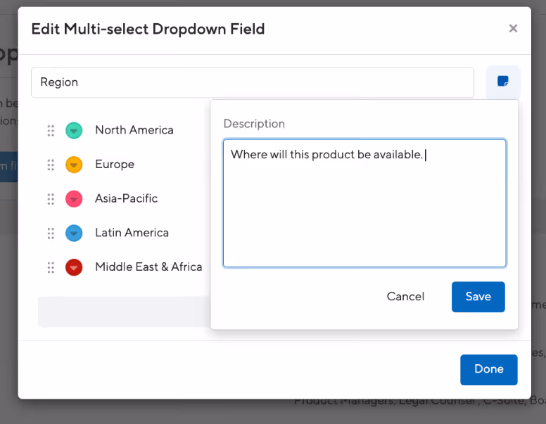 ProductPlan customers will now have access to a new, multi-select custom field type at both the account and team level. Multi-select custom fields allow you to further standardize and organize information across your roadmaps and portfolios. These fields allow stakeholders to understand critical information about work being done by teams across the organization.