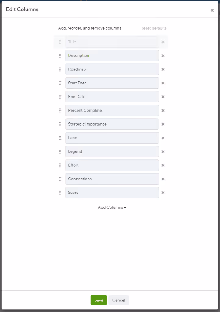 - When you sort your roadmap, fields with no value will also be sorted to the bottom in either ascending or descending order.