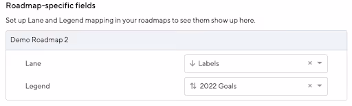 In addition to the updated icons, we are also introducing a way to sync the custom dropdown fields you've created in Jira with your roadmap legend fields in ProductPlan. For instance, if you've created a custom dropdown field in Jira for "2022 Goals", you can map that field to your roadmap legend so you can structure your roadmap by those 2022 goals. As shown below by the arrow iconography, these syncs can be either one-way or two-way, allowing you to push changes either from Jira to ProductPlan, or from ProductPlan back to Jira.